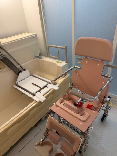 令和7年12月1日よりピーチデイサービスに「ユニバス」という車椅子入浴が可能な介護浴槽が導入されました。